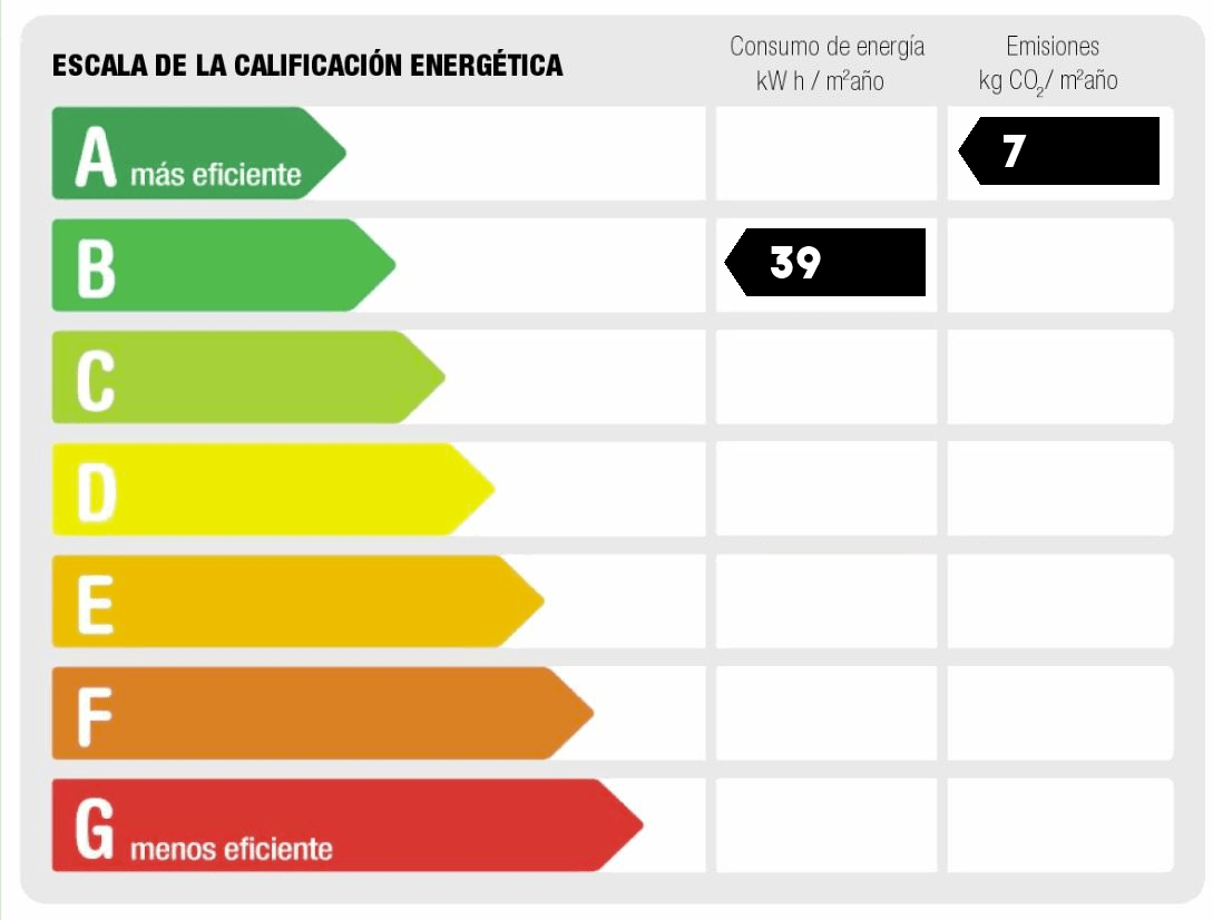 - Consumo de energía (kwh/m2 año): 39.