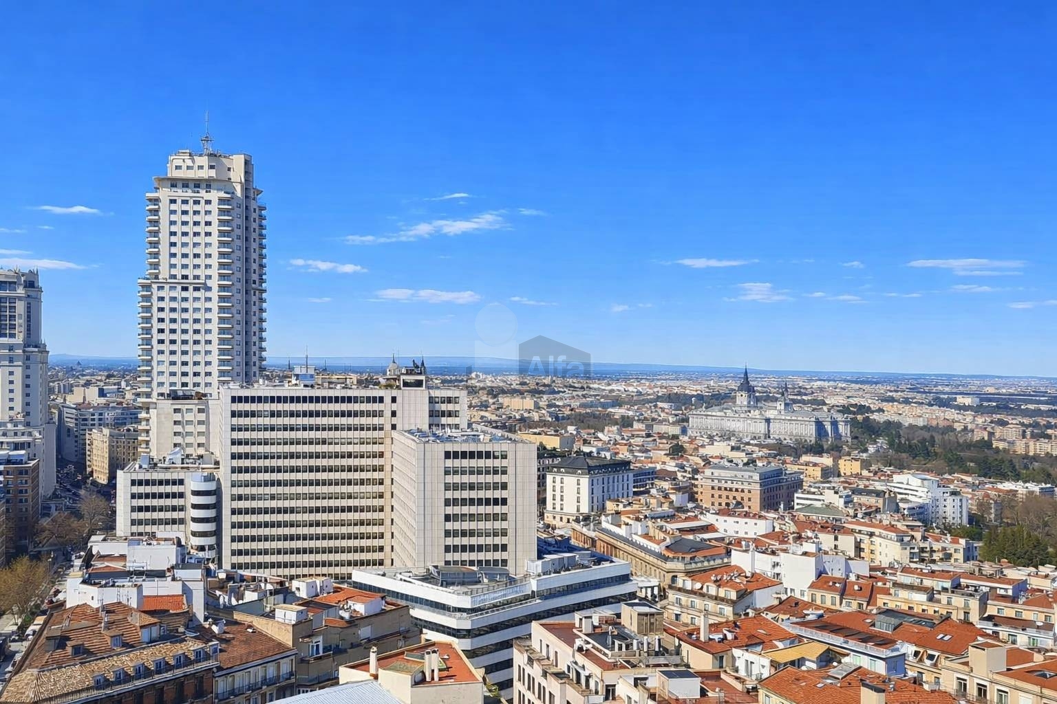 La vivienda se sitúa en una planta 18, lo que le otorga un valor excepcional: impresionantes vistas panorámicas de Madrid, abiertas, luminosas y difíciles de igualar. Desde sus ventanales se disfruta de una perspectiva privilegiada del skyline madrileño, con una sensación de amplitud, luz y tranquilidad poco habitual en el centro de la ciudad. Un auténtico mirador urbano que transforma cada estancia en una experiencia única.